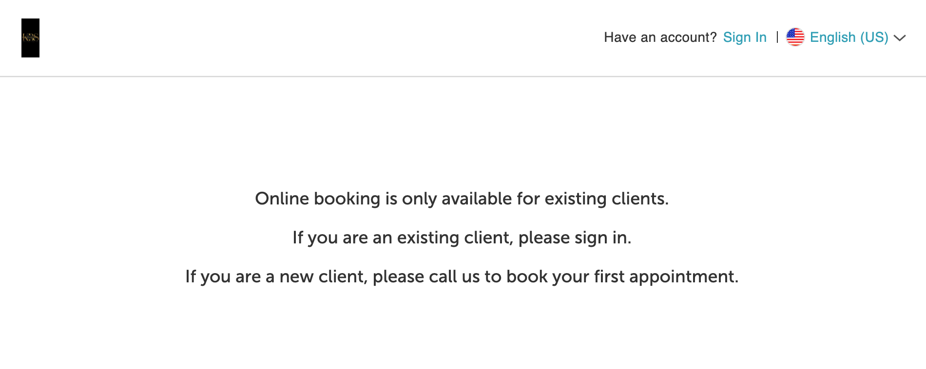When a new client accesses your booking widget, a message will appear informing them that online booking is unavailable. The message includes instructions on how to proceed, usually directing them to contact the business directly for assistance.