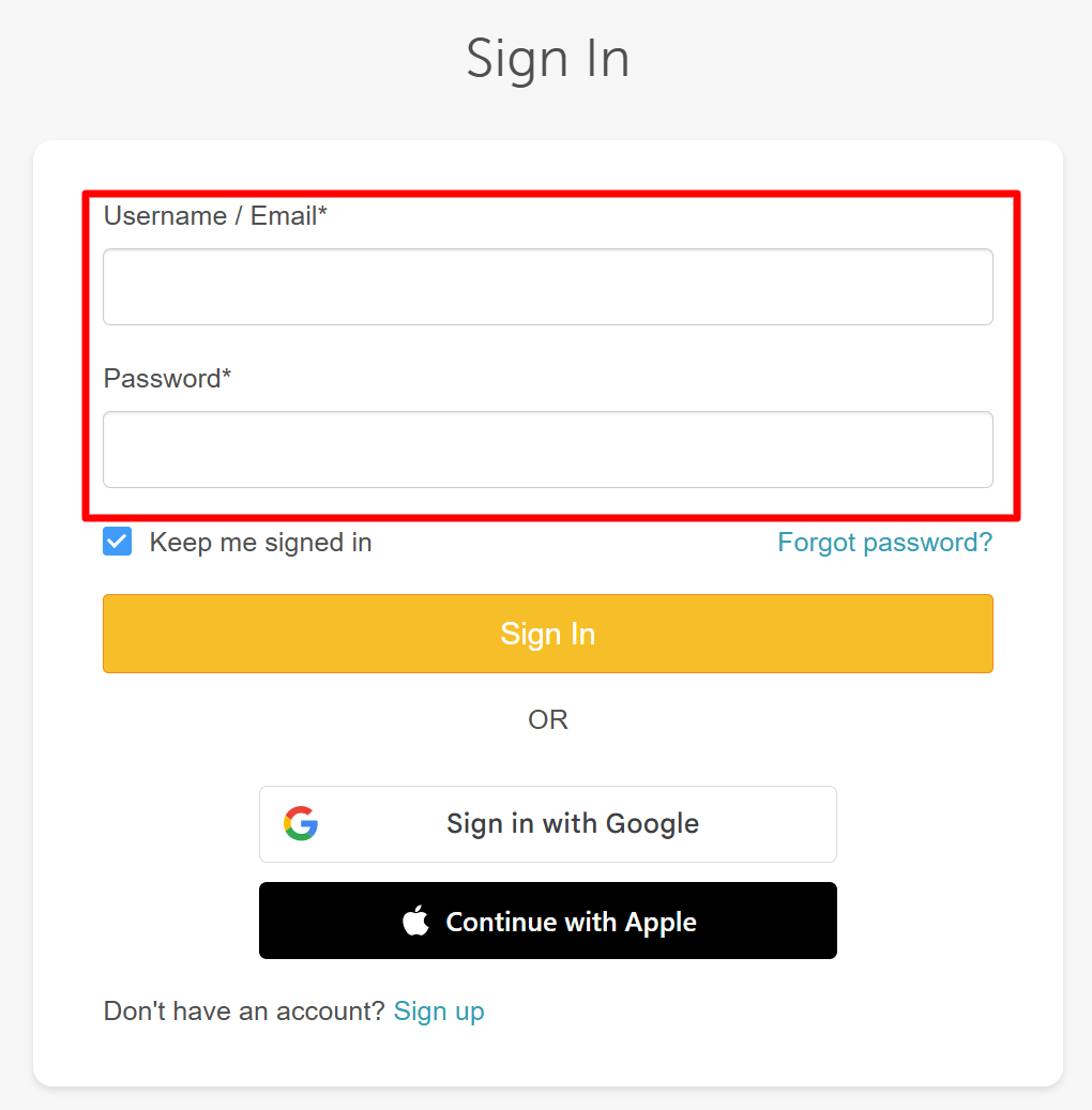 2. On the sign-in screen, enter your username or email and password.