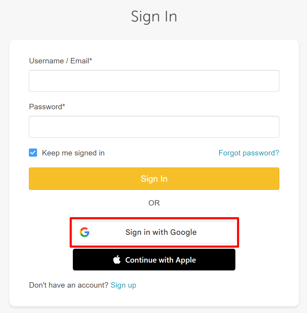 2. On the sign-in screen, click "Sign in with Google"