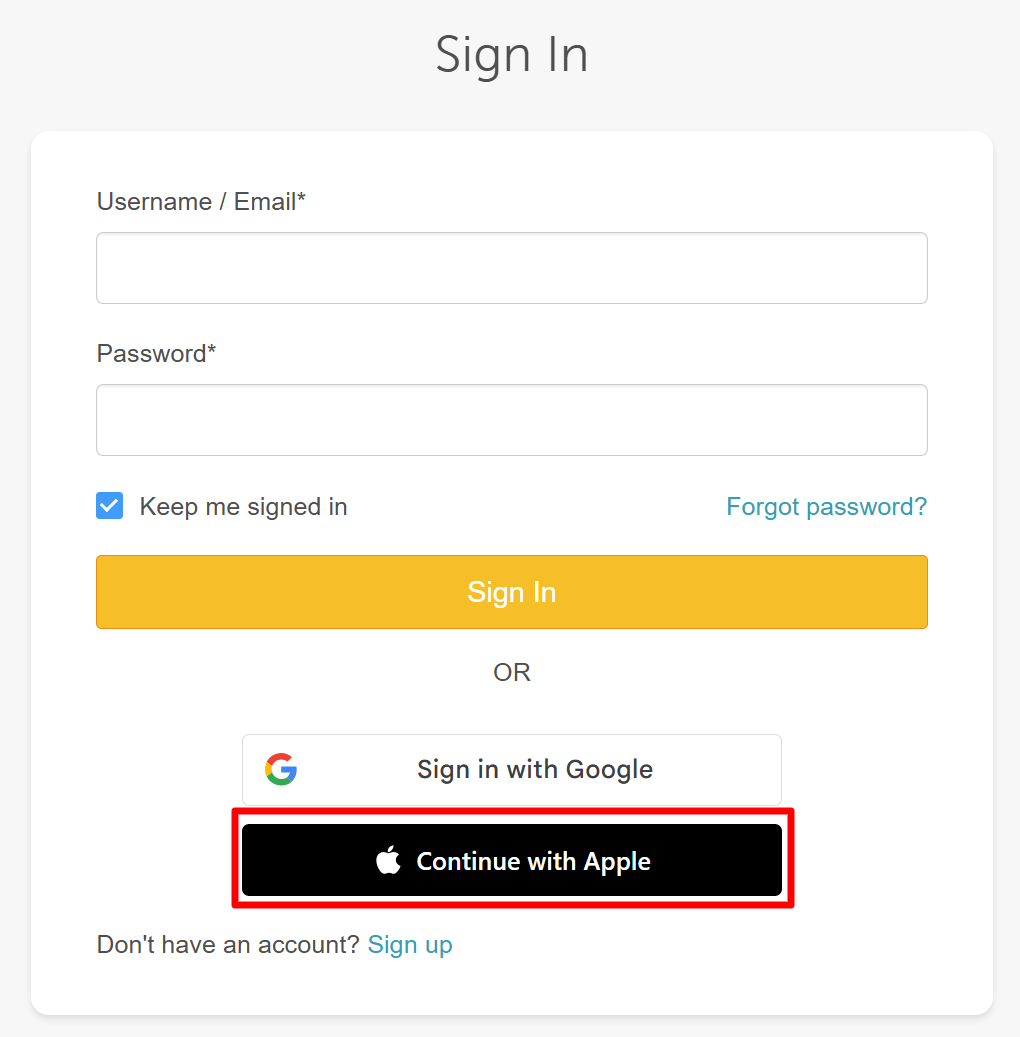 2. On the sign-in screen, click "Sign in with Apple"