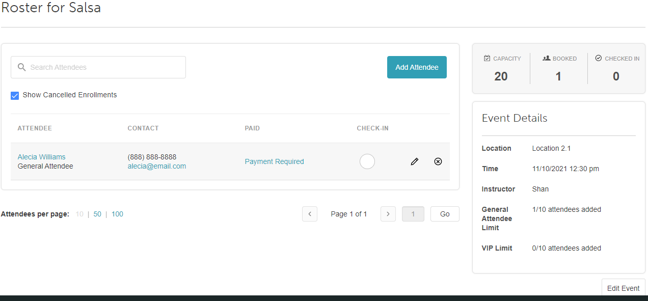 - The attendee type and the amount charged are determined by the class configuration. Learn more here