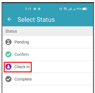 - You will be redirected to the appointment details screen to see that the status for the appointment changed from Booked to Checked In