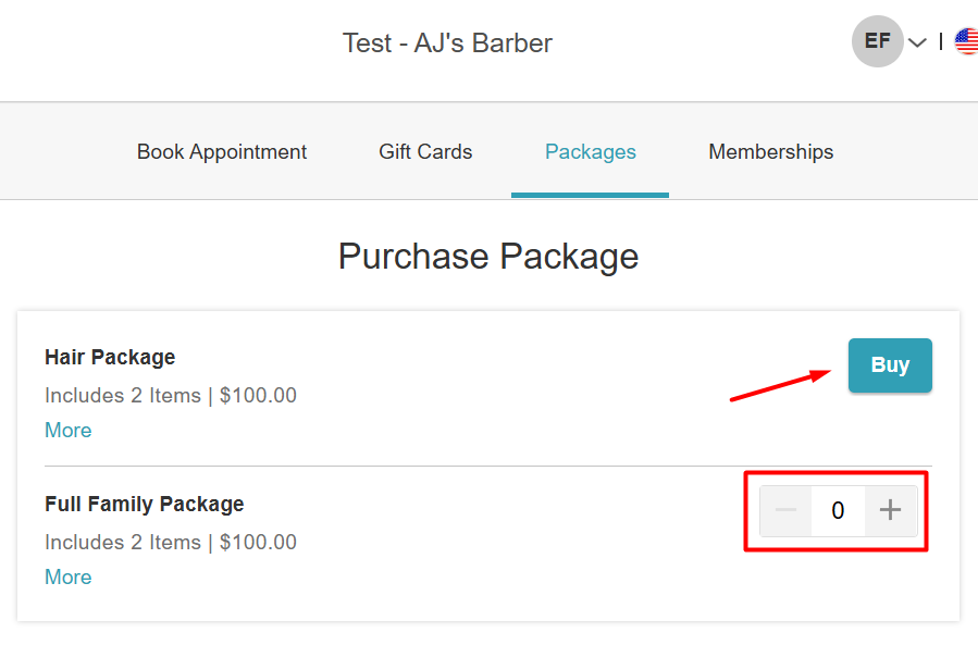 - When purchasing packages online, clients can buy multiple packages in various quantities if the packages are set up for all family members. This feature is controlled by a hidden setting that only the MyTime team can enable. To activate this setting, please contact our Support Team at support@mytime.com. Please note that if the "Can only be purchased once per client" option is enabled during package configuration, the ability to purchase multiple quantities will not be available.