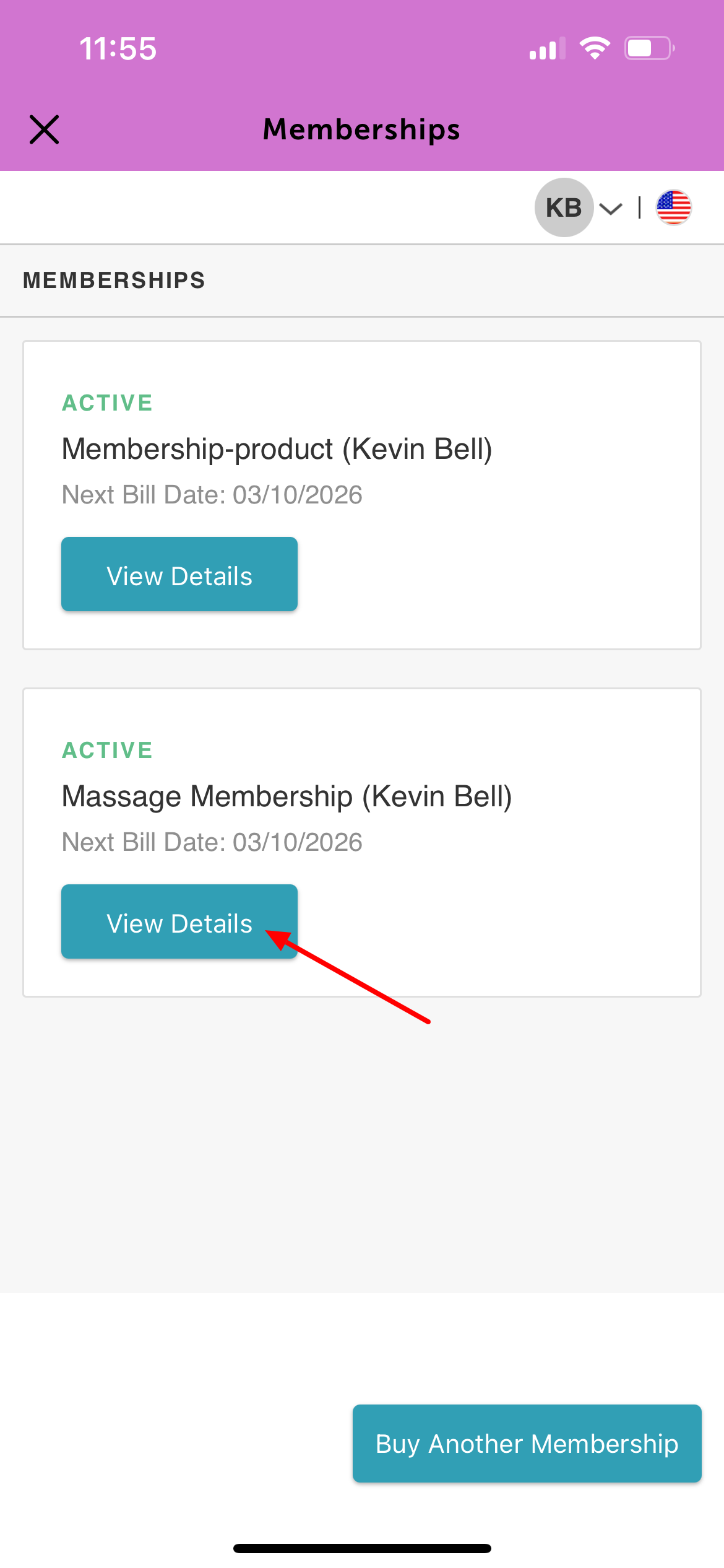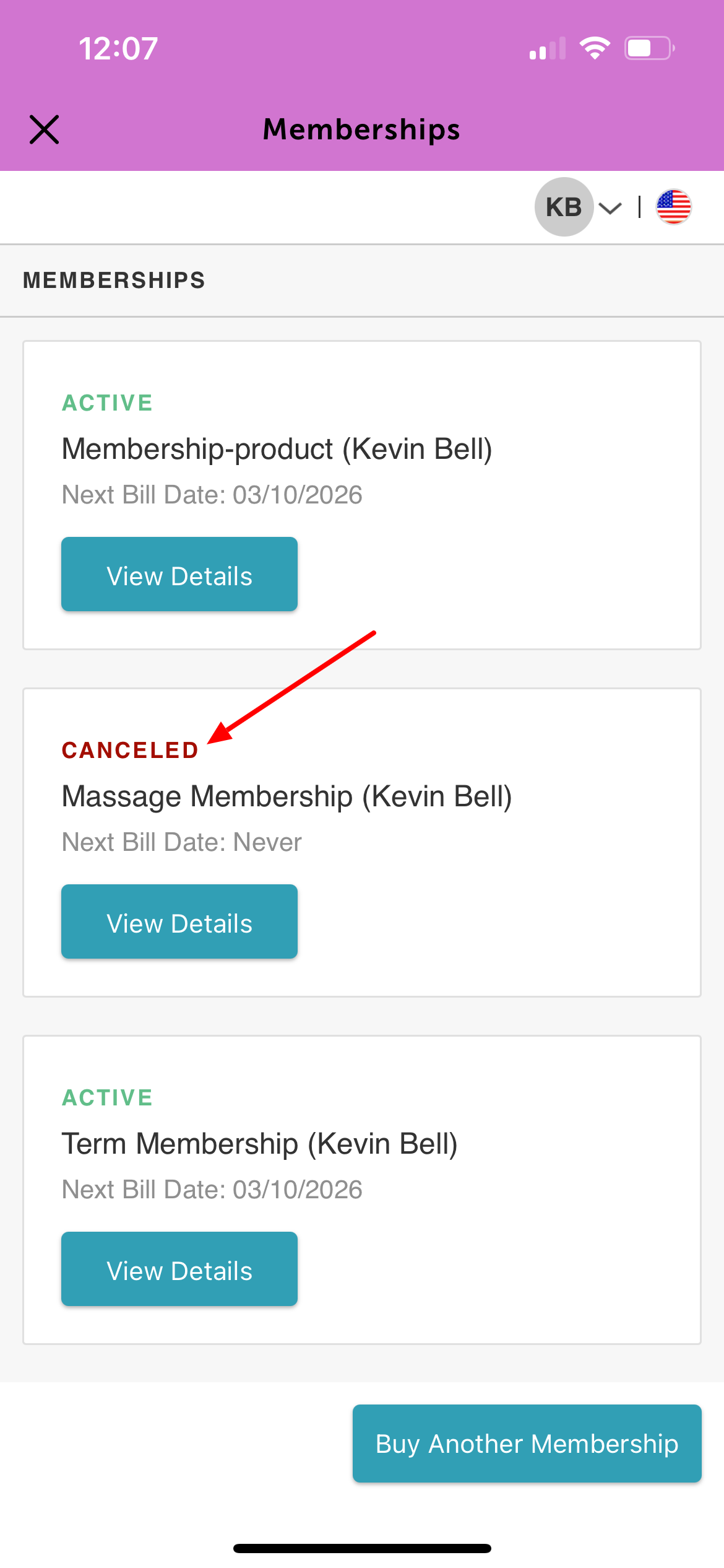 5. Select 'View Details' for the membership you want to cancel the membership auto-renewal for