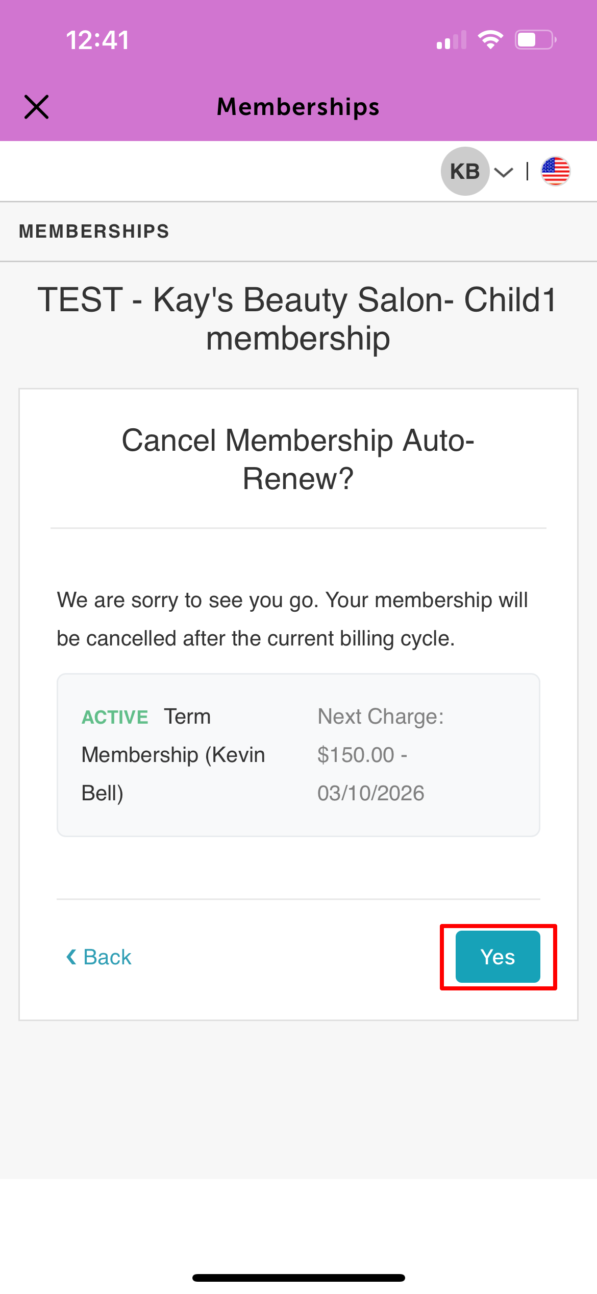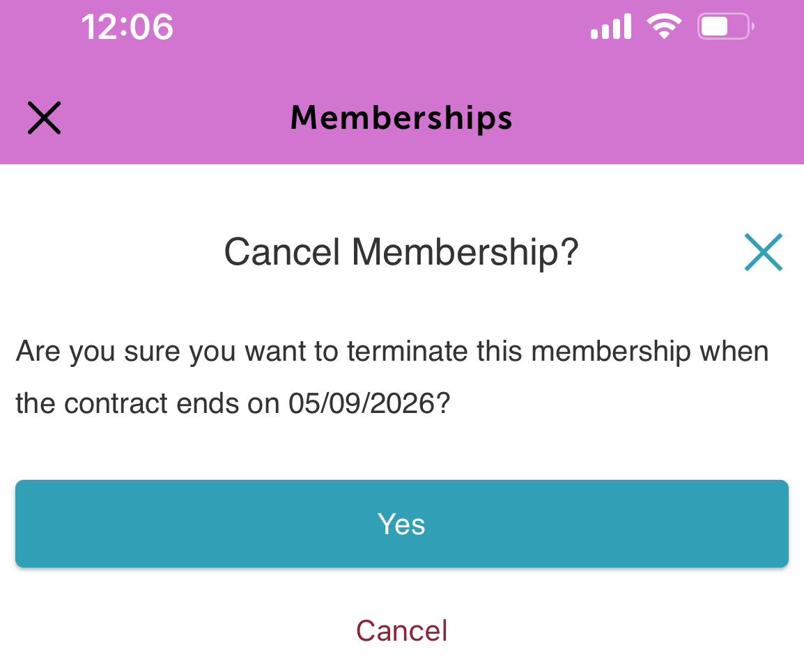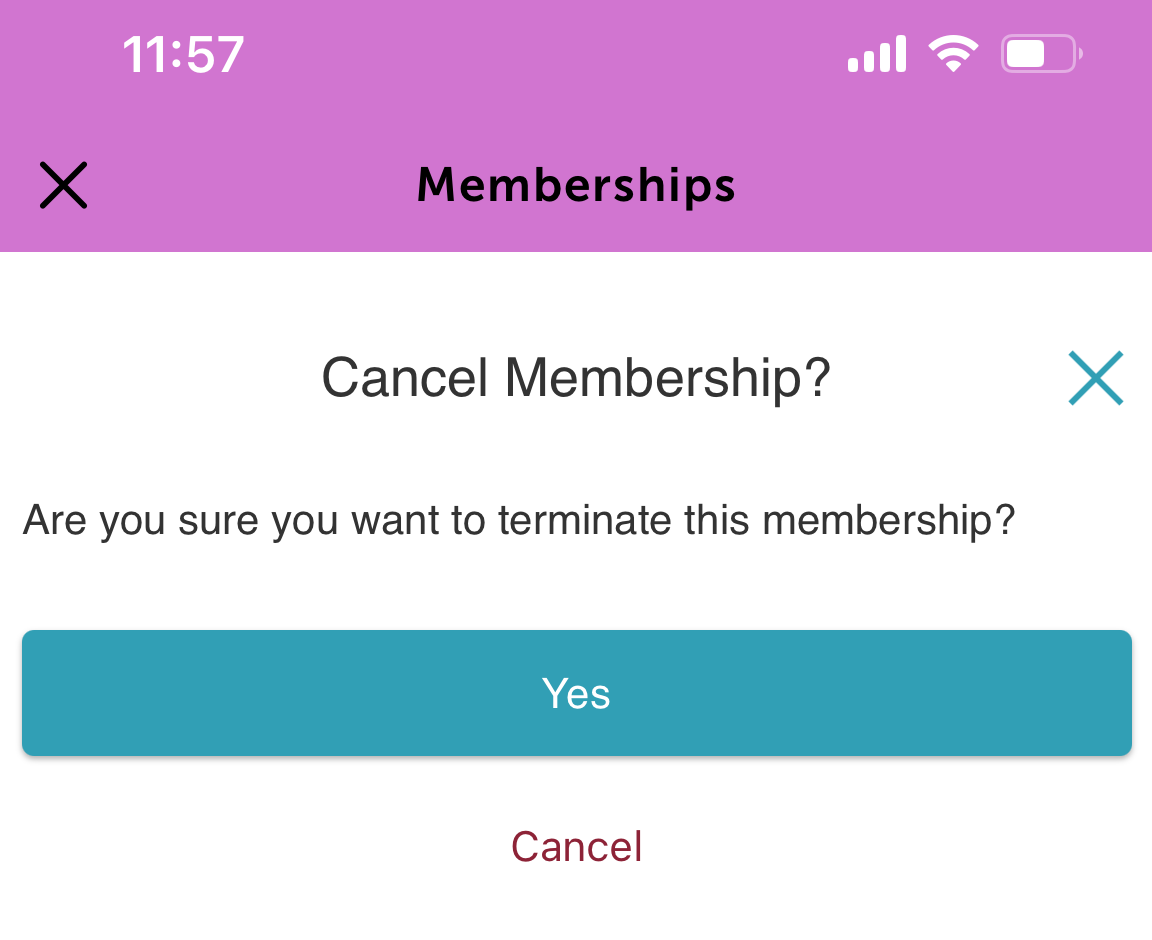 7. When the “Cancel membership?” confirmation pop-up appears, tap Yes to confirm.