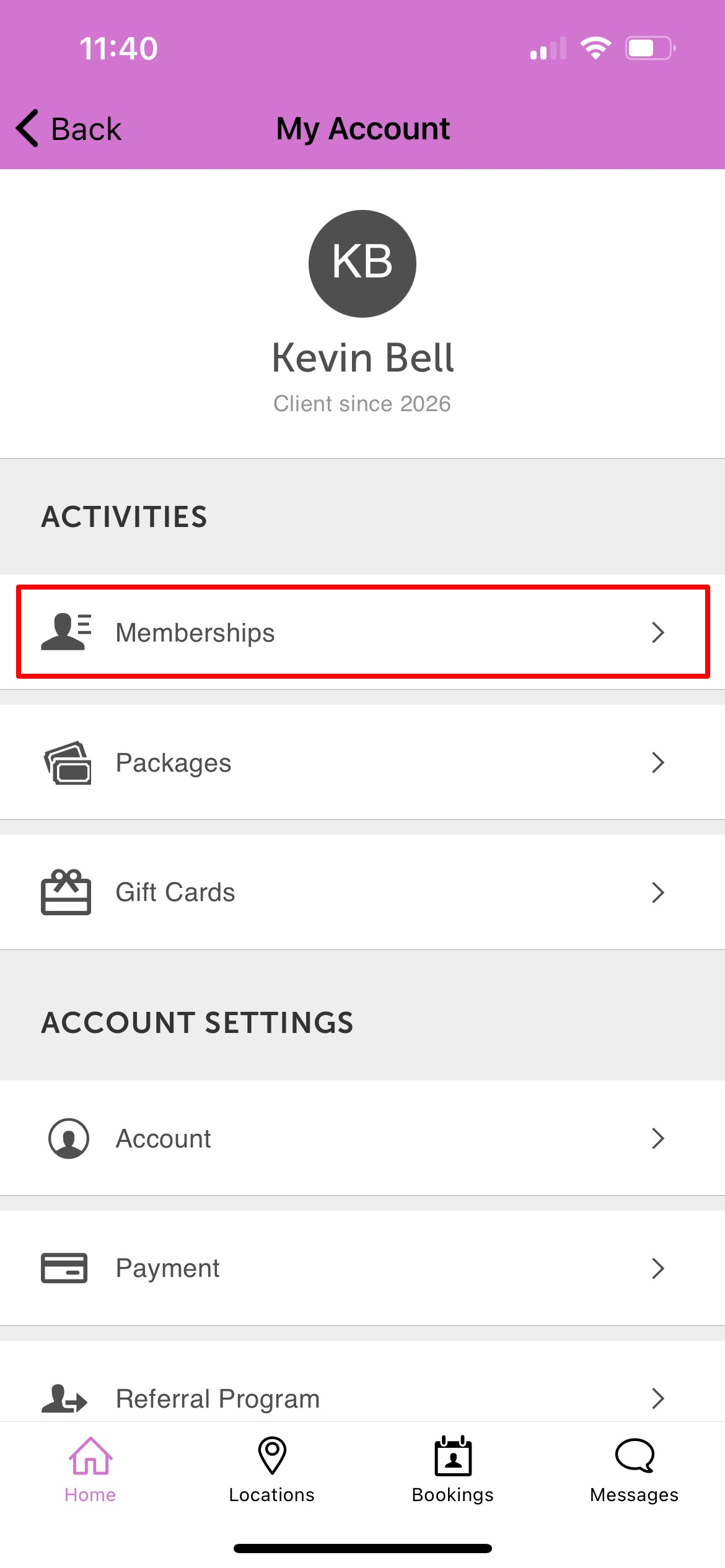 4. Tap 'Memberships'