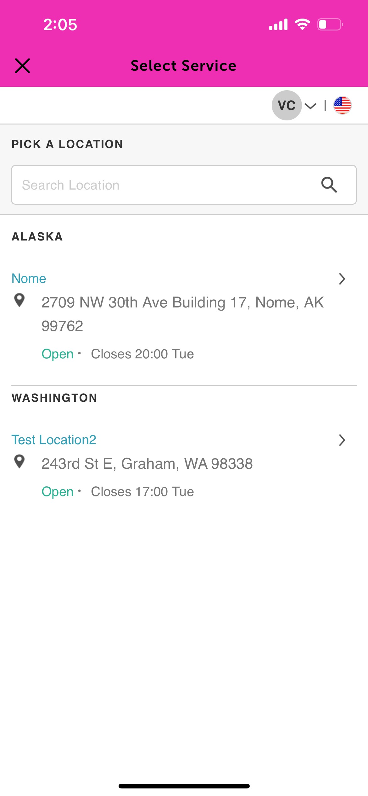4. Select the desired location